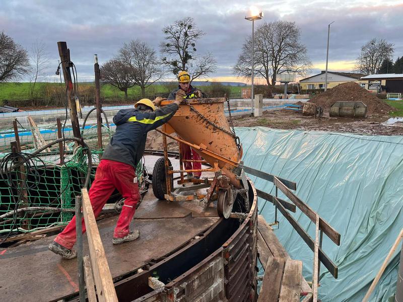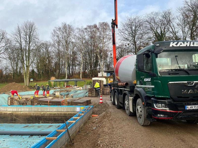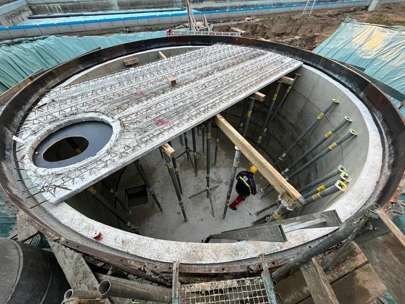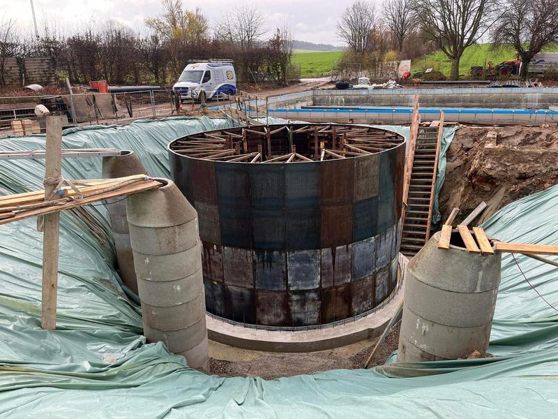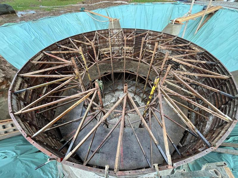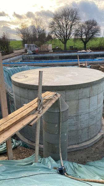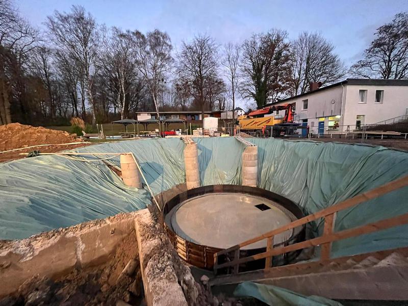 Die Betonarbeiten am Schwallwasserbehälter sind in den geplanten 7 Tagen fertig gestellt worden. Vielen Dank an alle Beteiligten für die saubere und termingerechte Umsetzung. Jetzt heißt es die 28 Tage bis zur erforderlichen Betonfestigkeit weiter die Grundwasserabsenkung im Auge zu behalten, damit die „Dose“ nicht aufschwimmt. Parallel geht es mit dem Rohrleitungsbau weiter.