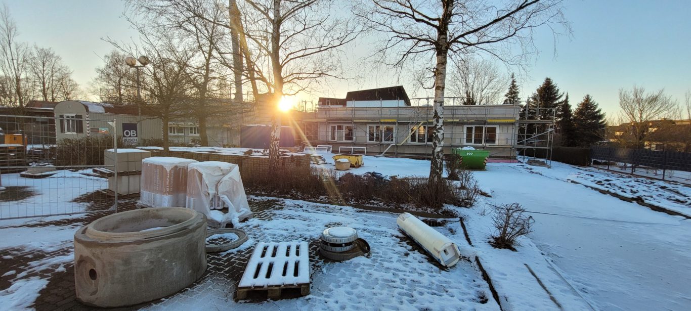 Aber in Bodenburg gibt es noch eine Großbaustelle: Unsere Kinder der Grundschule bekommen ein erweitertes und renoviertes neues Zuhause. Noch werden übergangsweise Container als Klassenräume genutzt.