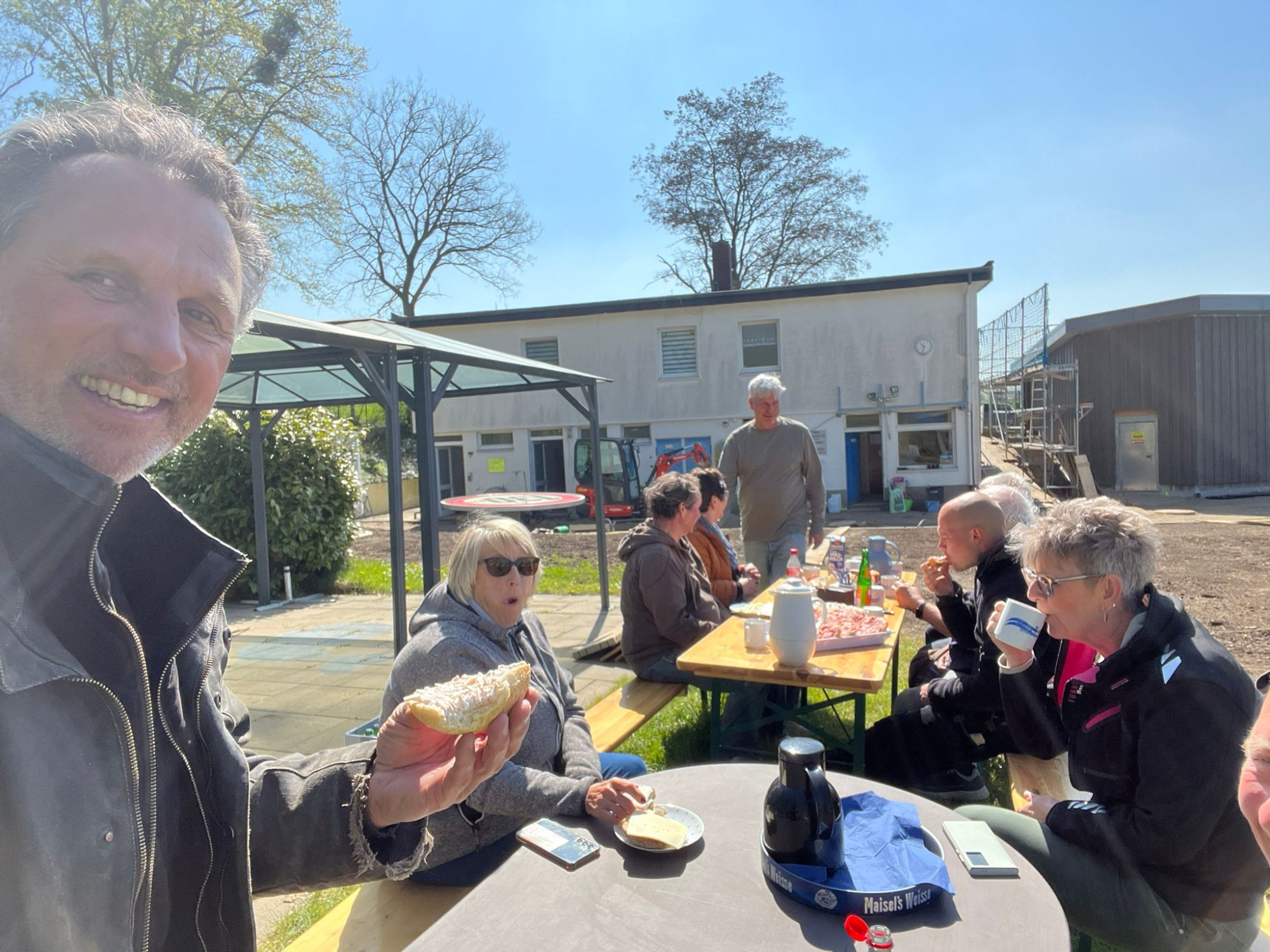 Jens und seine Mitstreiter haben den Schwallbehälter im Schwimmbad gereinigt. Nach einer ärgerlichen Krankheit ist Jens wieder fit und mit vollem Einsatz dabei. Martina übergab ihm eine "Vitaminspritze" in Form eines frischen Obstkorbs. Wir brauchen Jens dringend, denn sein Einsatz und Wissen ist unverzichtbar für die Fertigstellung der aktuellen Baumaßnahmen in unserem Bad