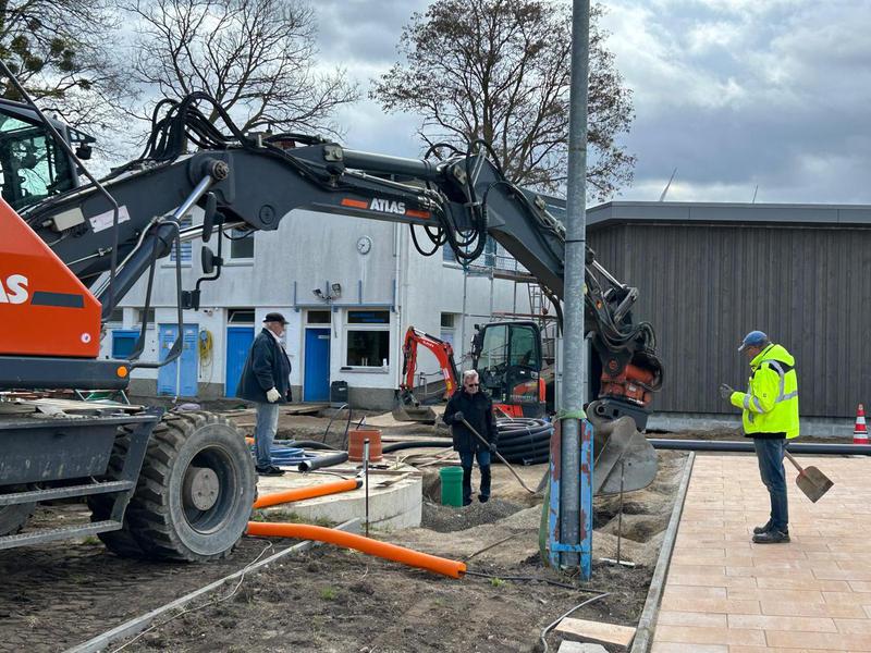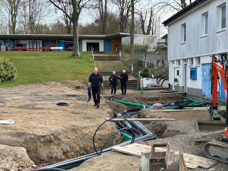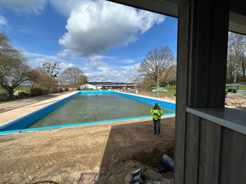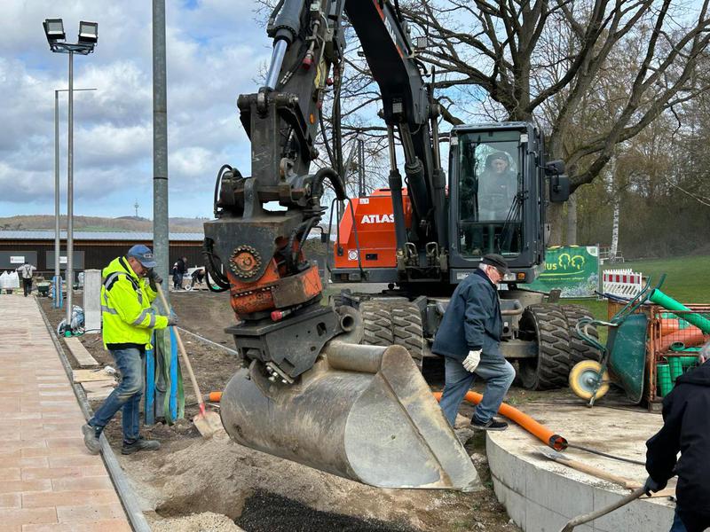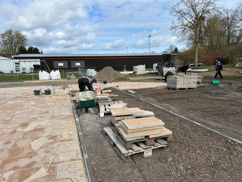 Jetzt ist Feierabend und das Osterfest kann beginnen. Das erste Durchschreitbecken ist fertig ? Dienstag wird weiter gepflastert